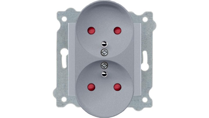 Gniazdo Podwójne z Uziemieniem Przesłony typ E Srebrne 248/10E EXEN