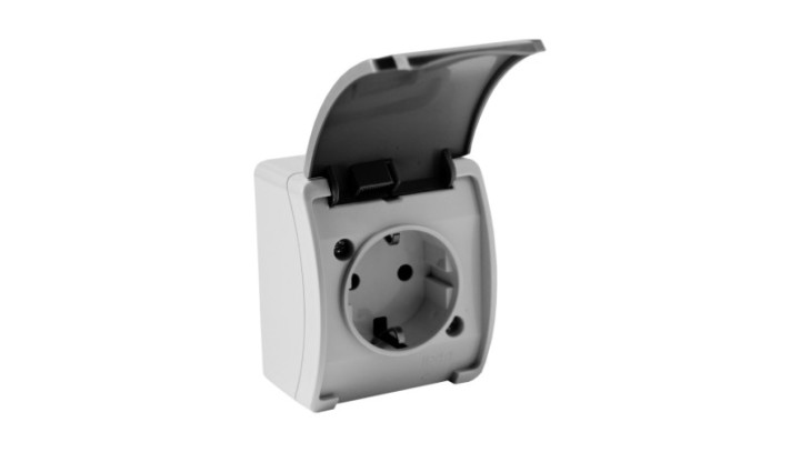 Gniazdo pojedyncze schuko natynkowe IP44 popiel/grafit 181-08 DV 8271