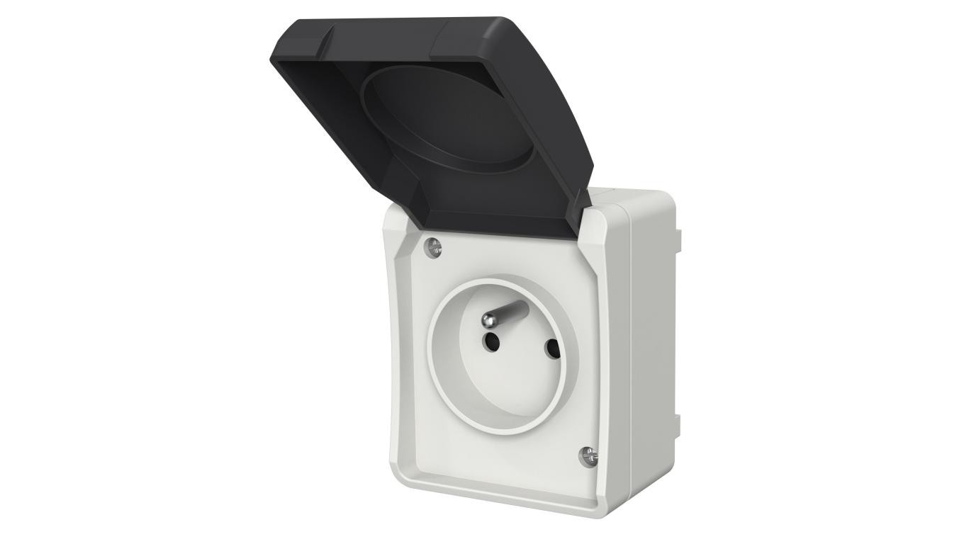 Gniazdo pojedyncze z uziemieniem natynkowe z klapką Aqua Plus IP54 szare / 40114