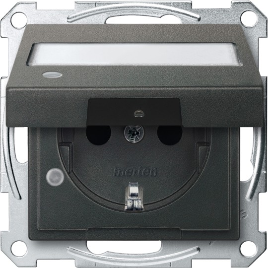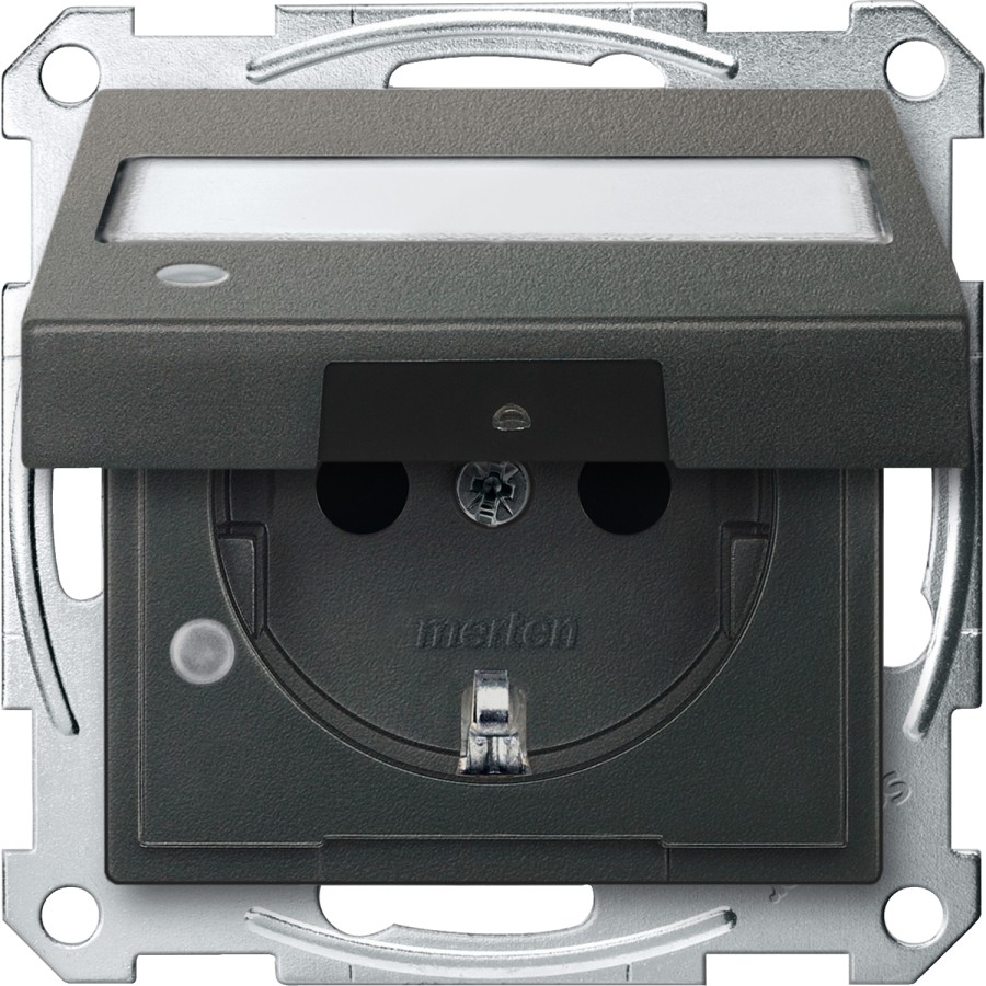 Gniazdo SCHUKO z klapką, p.opis., sygn. zał. przesł., b.śrub., antracyt, Sys M MTN2313-0414