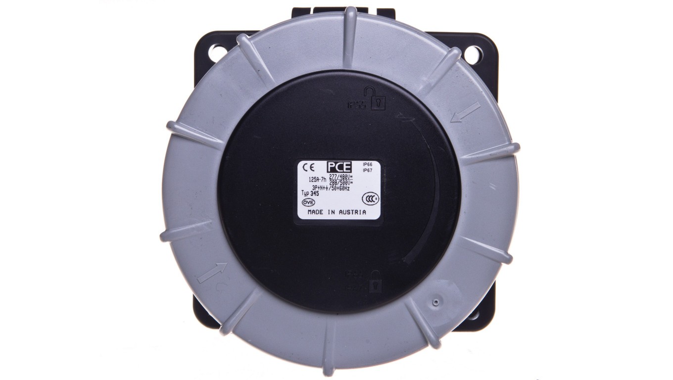 Gniazdo tablicowe 125A 5P 500V /120x120/ czarne IP67 POWER TWIST 345-7