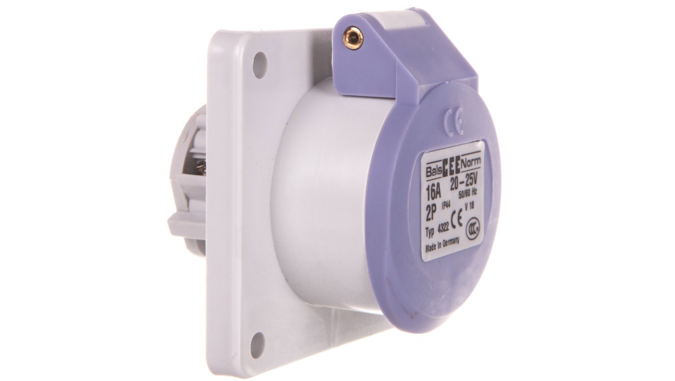 Gniazdo tablicowe niskonapięciowe proste 16A 2p 24V bez wpustu pomocniczego IP44 4322