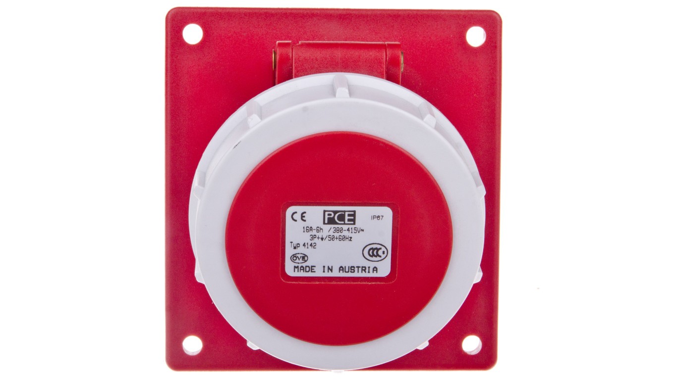 Gniazdo tablicowe skośne 16A 4P 400V czerwone IP67 POWER TWIST 4142-6