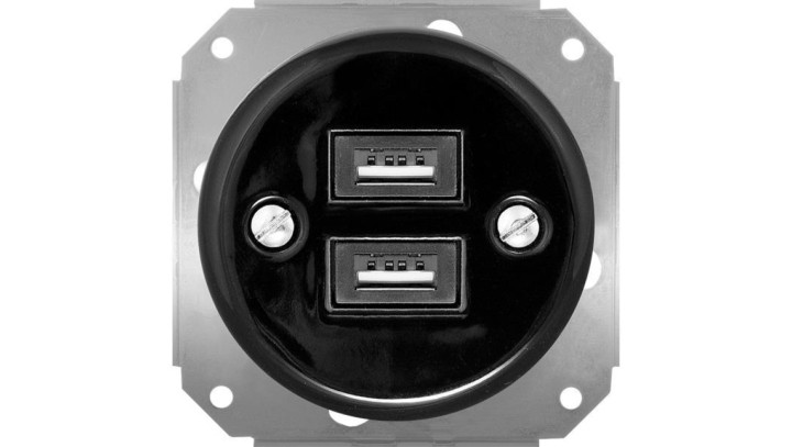 Gniazdo USB podwójne 3.2A Retro ceramic bez ramki, czarne
