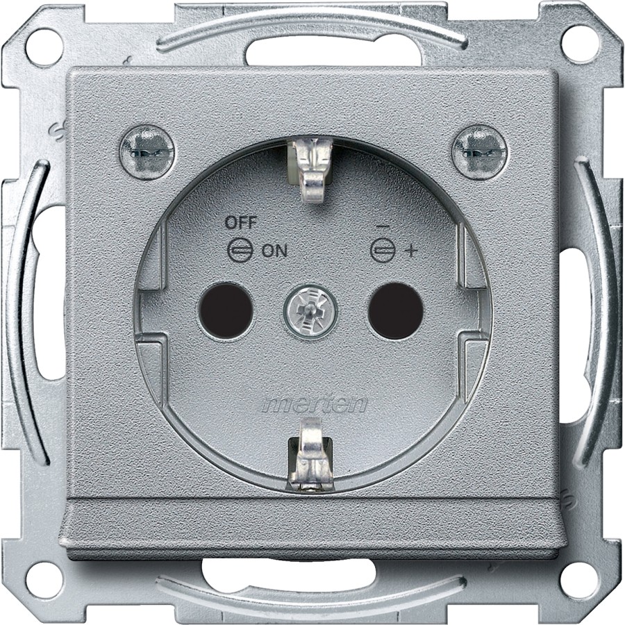Gniazdo wtykowe SCHUKO, wyjście ośw. i LED, przesł., b.śrub., alu, Sys M MTN2304-0460