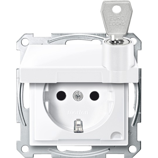 Gniazdo wtykowe SCHUKO z klapką przesł., blokady, b.śrub., B.A, P, Sys M MTN2315-0325