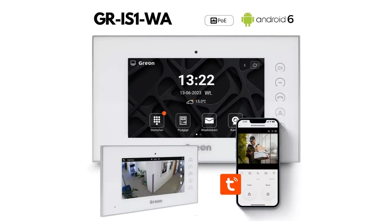 GR-IS1-WA Monitor 7 system Android, interkom, sterowanie przekaźnikami, PoE, podgląd kamer IP, kolor biały