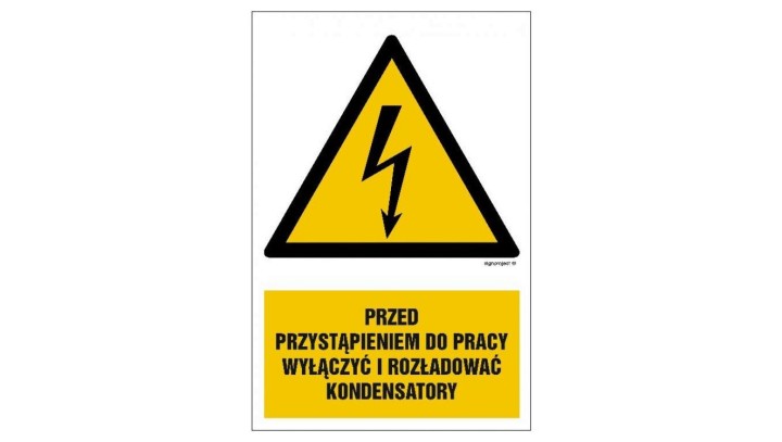 HA018 Przed przystąpieniem do pracy wyłączyć i rozładować kondensatory 30 x 45 cm FN - Folia samoprzylepna