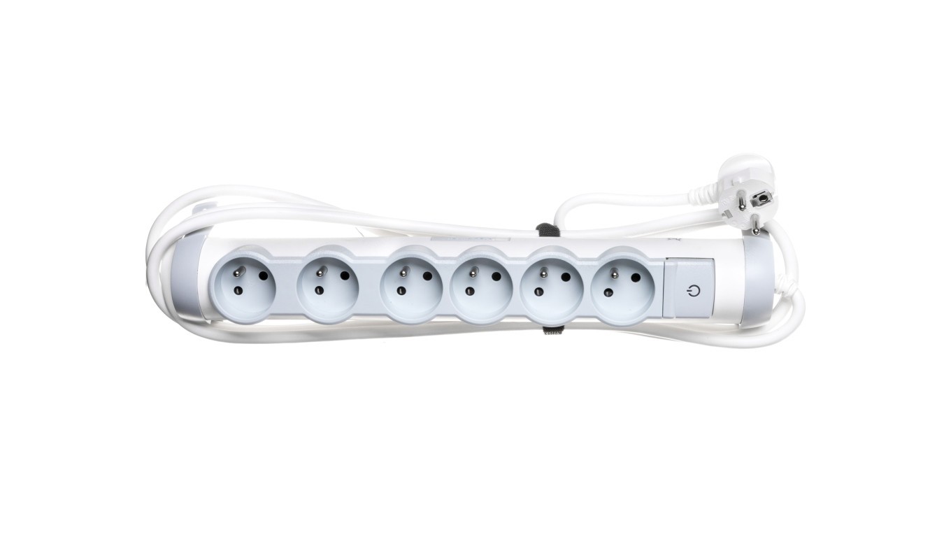 HELMO Gniazdo wtyczkowe przenośne płaskie b/u 2P 2,5A 250V biale 50311