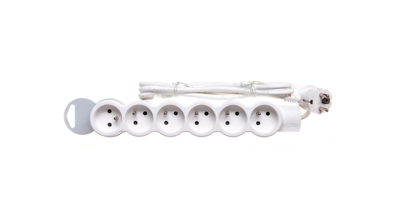HELMO Gniazdo wtyczkowe przenośne płaskie b/u 2P 2,5A 250V biale 50311