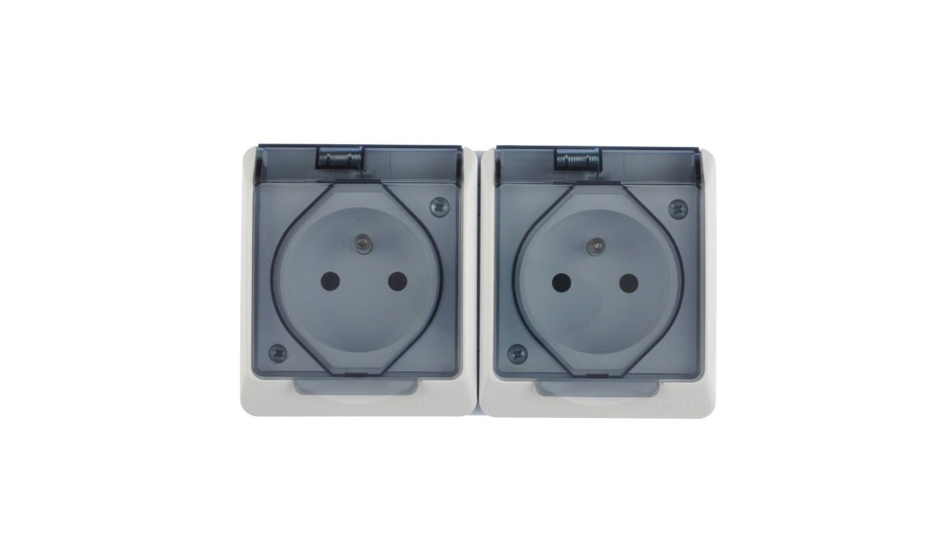 Hermes Gniazdo hermetyczne podwójne z/u 16A IP44 z klapką dymną białe GNT 0322-01