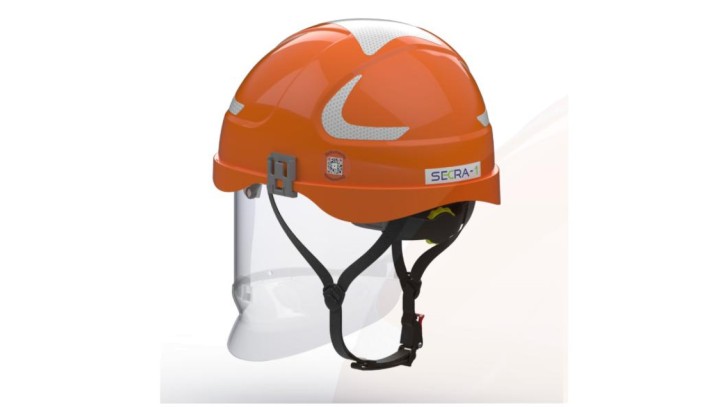 Hubix pomarańczowy hełm elektroizolacyjny z osłoną twarzy (ruchomą) W1 klasy 1 Box-test, do 20 kV AC / 1,5 kV DC SECRA H058S