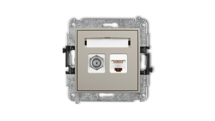 ICON Mechanizm gniazda antenowego poj. typu F (SAT) + gniazda komp. poj. 1xRJ45, kat. 5e, 8-stykowy taupe 60IGFK-1