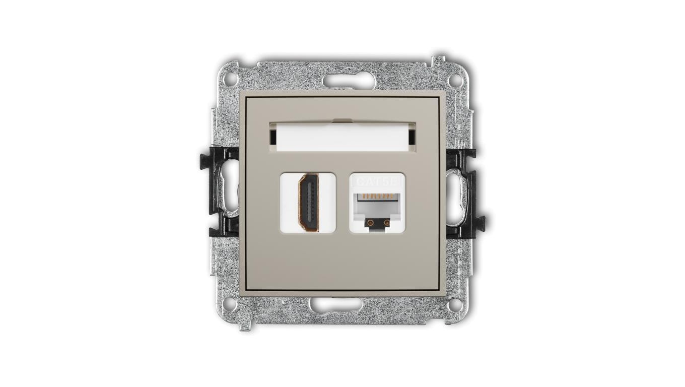 ICON Mechanizm gniazda pojedynczego HDMI 2.0, 4K + gniazda komp. poj. 1xRJ45, kat. 5e, 8-stykowy taupe 60IGHK