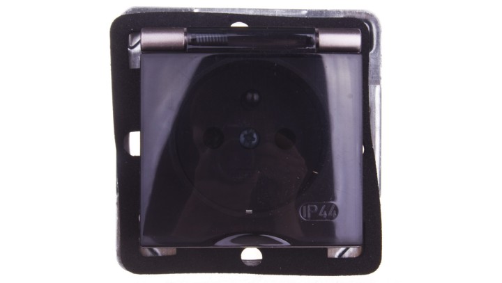 IMPRESJA Gniazdo bryzgoszczelne z/u IP44 klapka przezroczysta tytan GPH-1YZ/m/23/d