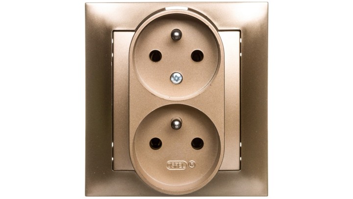 IMPRESJA Gniazdo podwójne z/u z niezamiennością faz złoty metalik GP-2YC/28