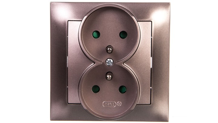 IMPRESJA Gniazdo podwójne z/u z przesłonami tytan GP-2YZP/23