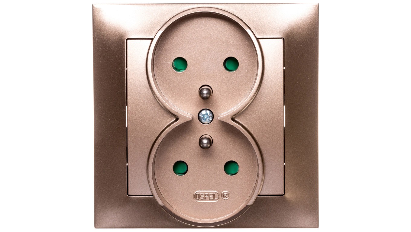 IMPRESJA Gniazdo podwójne z/u z przesłonami złoty metalik GP-2YZP/28