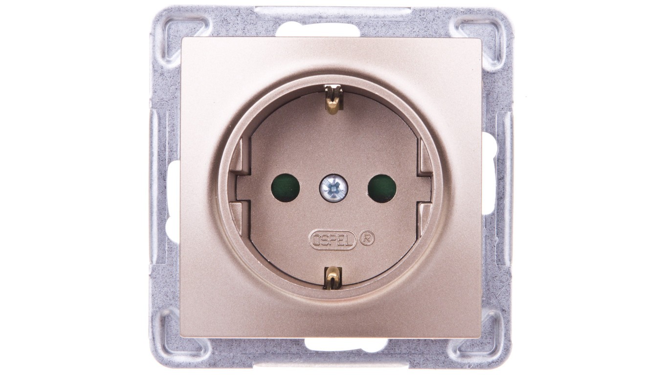 IMPRESJA Gniazdo pojedyncze z/u Schuko z przesłonami złoty metalik GP-1YSP/m/28