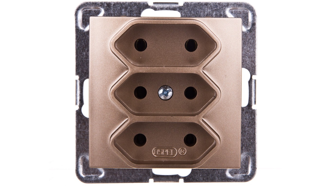 IMPRESJA Gniazdo potrójne b/u 2,5A EURO złoty metalik GP-3Y/m/28