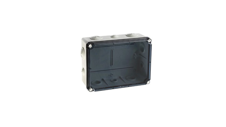 IP65 Puszka hermetyczna LIGHT 197x260x100 pokrywa transparentna, z dławicami (4xM25, 6xM40)