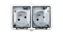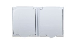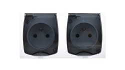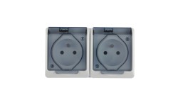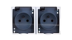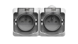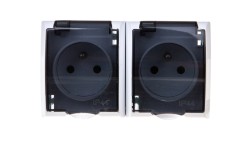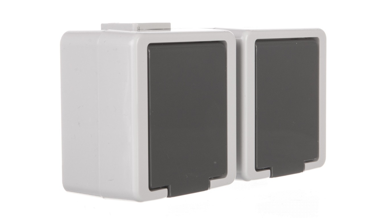 JANTAR Gniazdo podwójne z/u IP44 z klapką szare GNt-6J