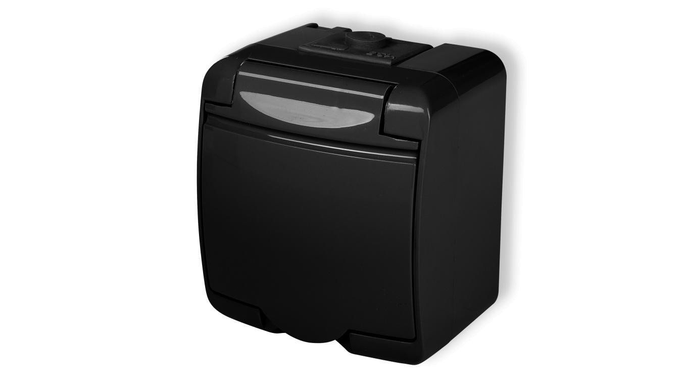 JUNIOR Gniazdo pojedyncze z uziemieniem 2P+Z (klapka czarna bez przesłon) czarny 12GHE-1