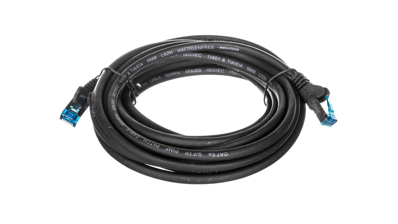 Kabel krosowy patchcord S/FTP (PiMF) kat.6a LSZH czarny 5m 93820
