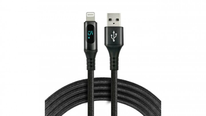 Kabel przewód pleciony USB - Lightning LCD everActive CBB-1IBL 100cm z obsługą szybkiego ładowania do 2,4A czarny