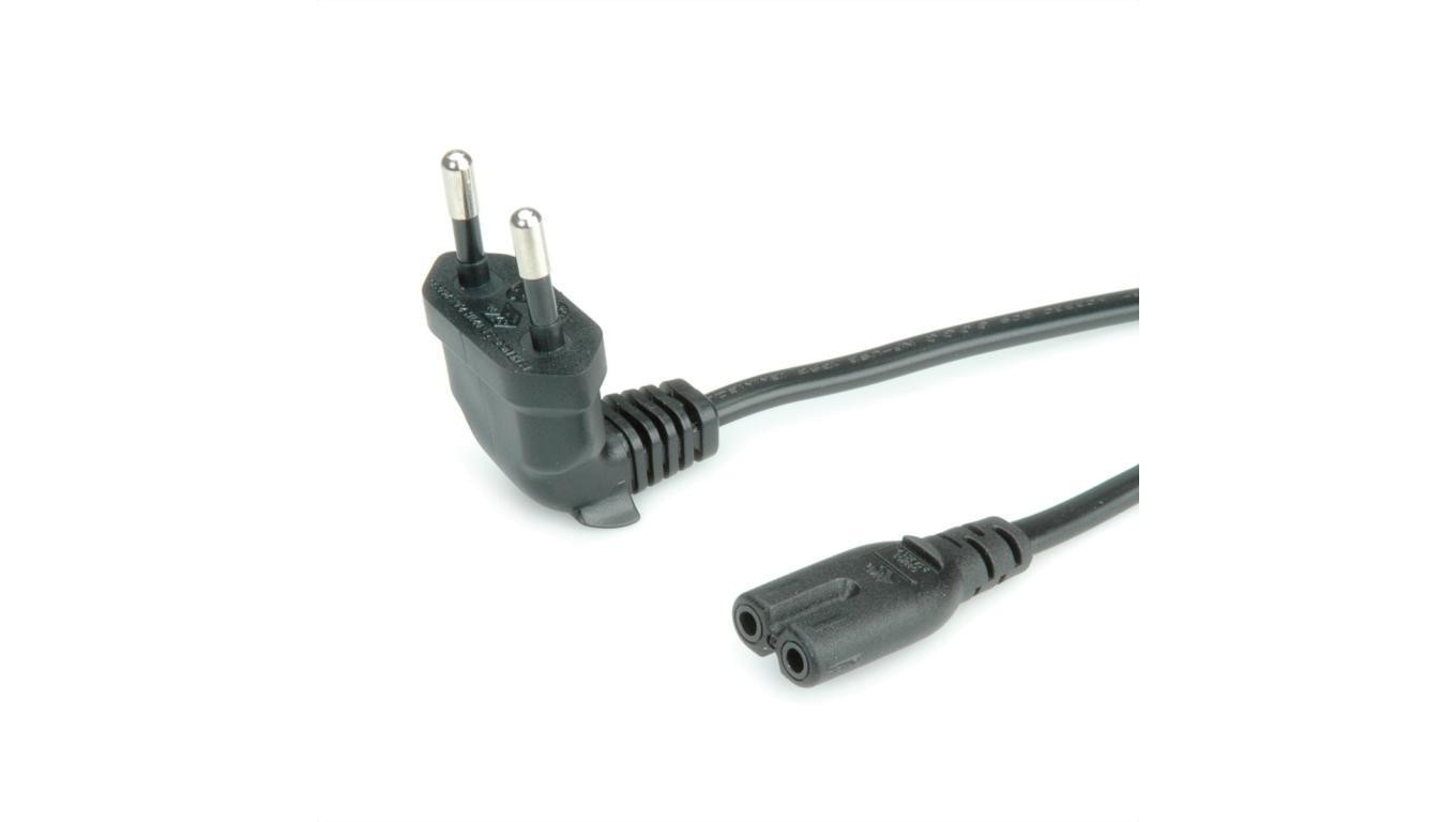 Kabel zasilający ROLINE z wtyczką Euro (kątową) do C7, 2-biegunowy, czarny, 1,8 m