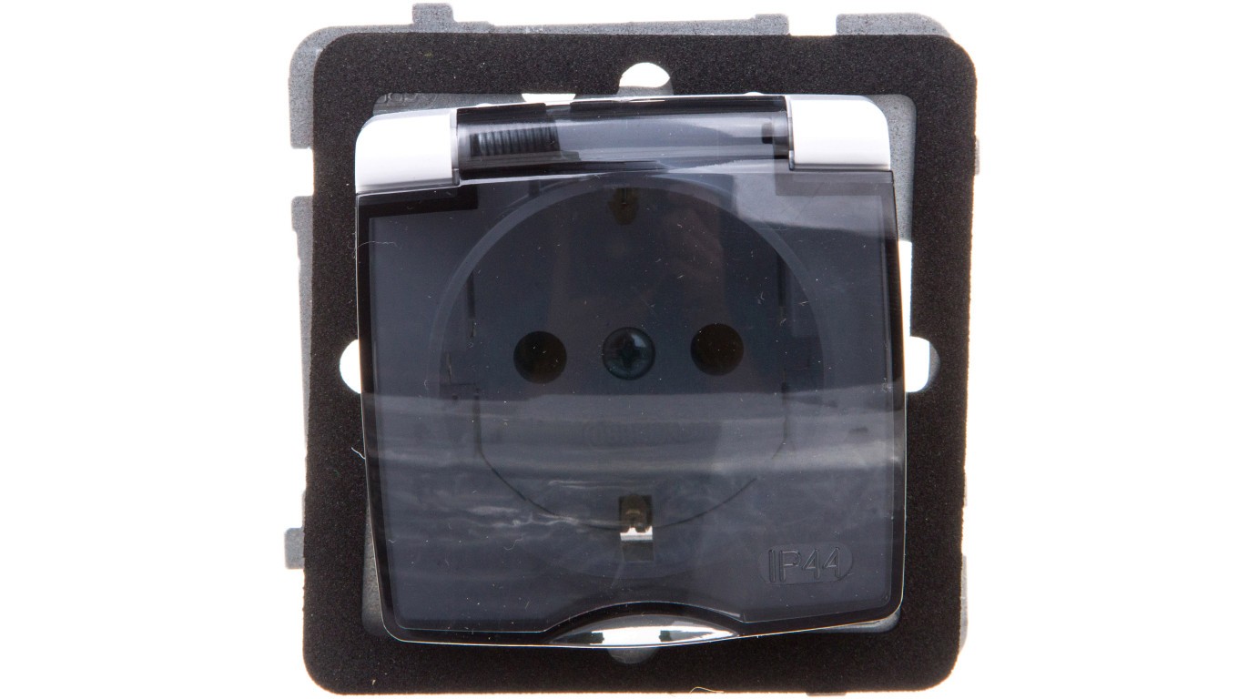 KARO Gniazdo bryzgoszczelne z/u Schuko IP44 klapka przezroczysta białe GPH-1SS/m/00/d