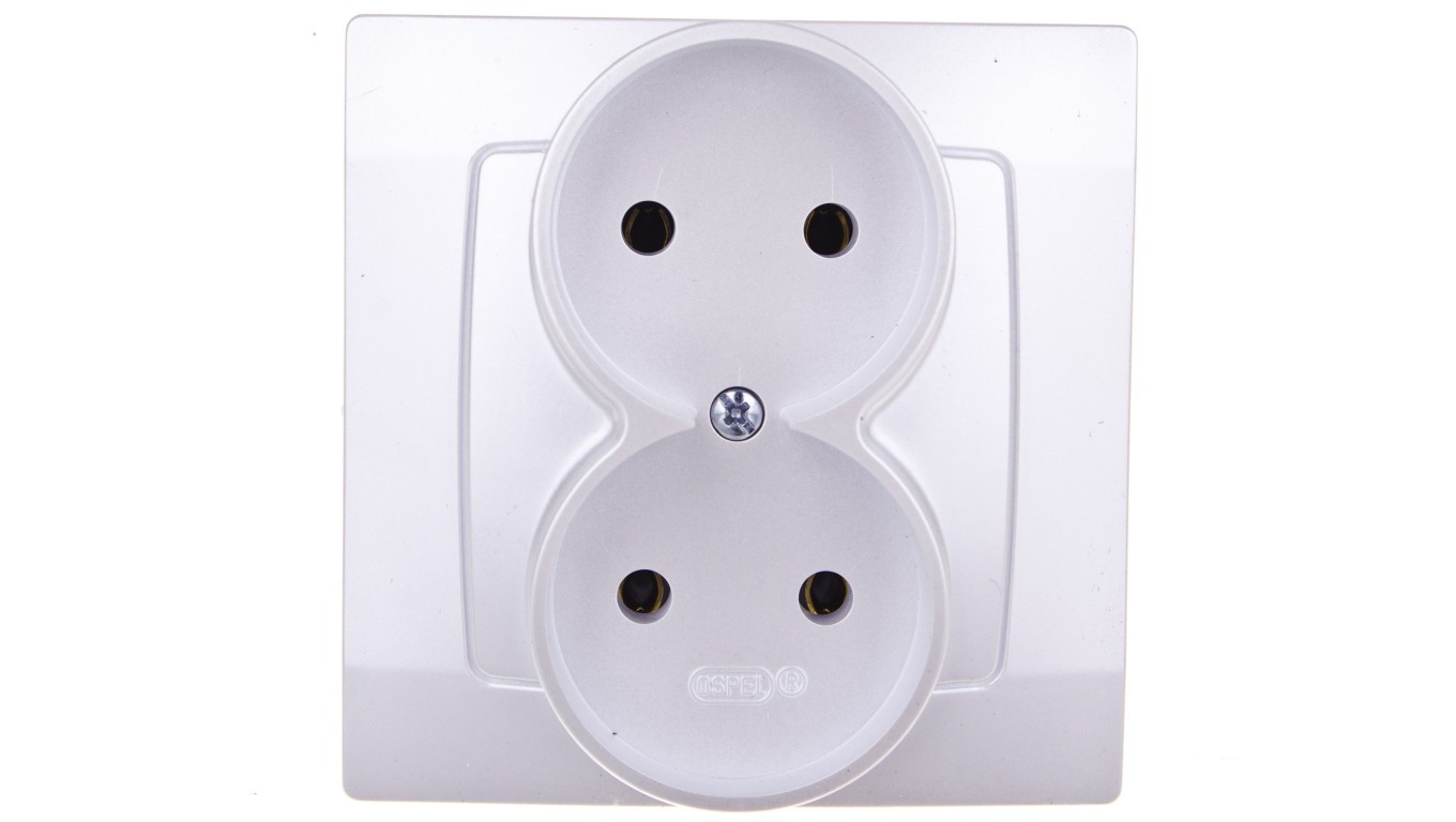 KARO Gniazdo podwójne b/u srebrny perłowy GP-2S/43