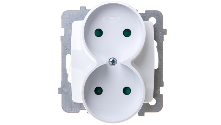 KARO Gniazdo podwójne b/u z przesłonami białe GP-2SRP/m/00