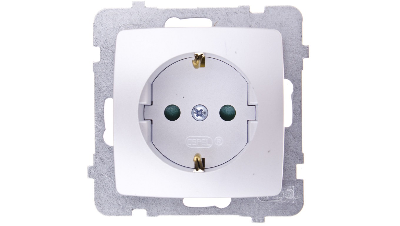 KARO Gniazdo pojedyncze z/u Schuko z przesłonami srebrny perłowy GP-1SSP/m/43