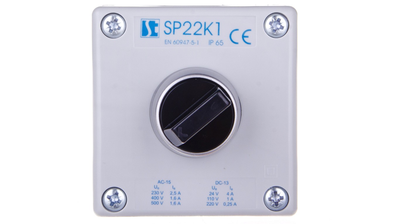 Kaseta sterownicza 1-otworowa pokrętło dwupołożeniowe IP65 przepust PG-G20W01 szara SP22K1"06-2