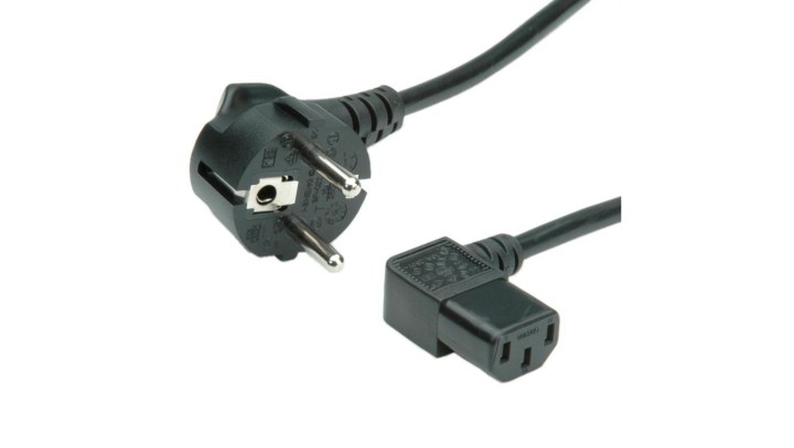 Kątowy kabel zasilający ROLINE. Złącze IEC, czarne, 1,8 m
