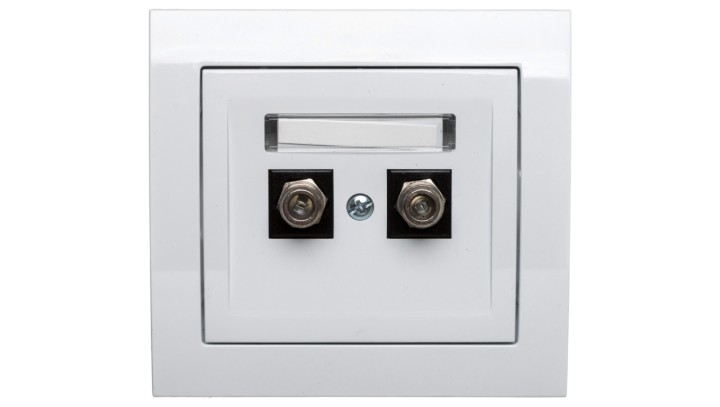 KIER Gniazdo antenowe podwójne typu F białe GPA-2WF/00