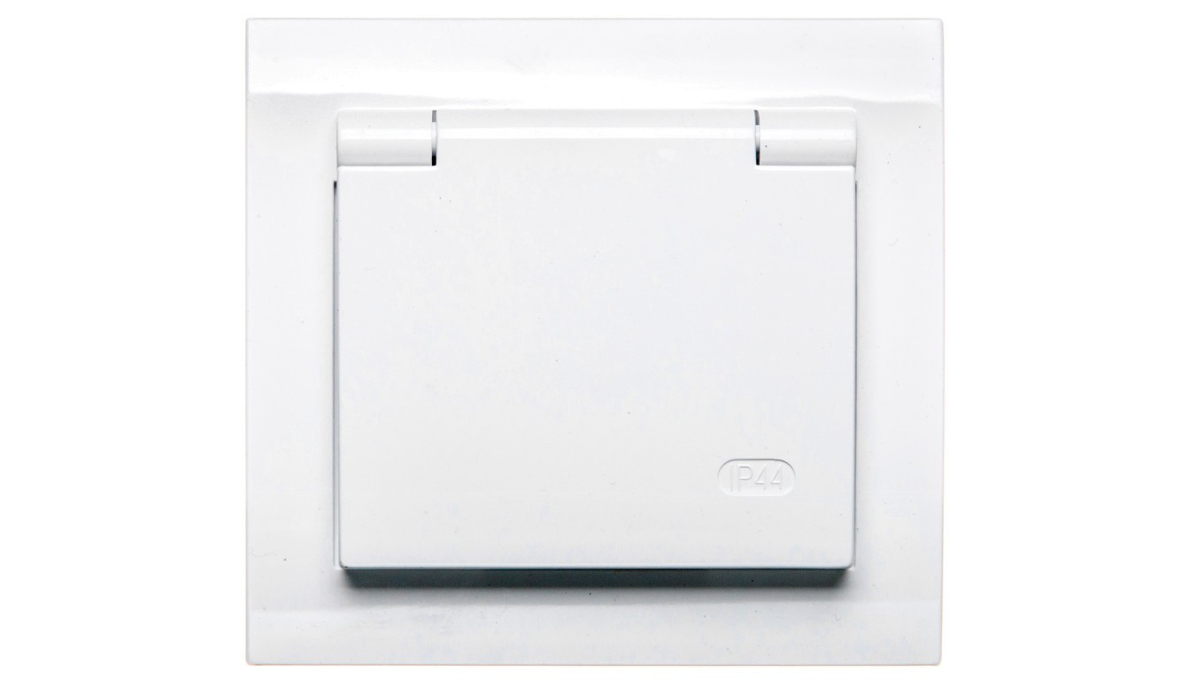 KIER Gniazdo bryzgoszczelne z/u IP44 z przesłonami klapka biała GPH-1WZP/00/w