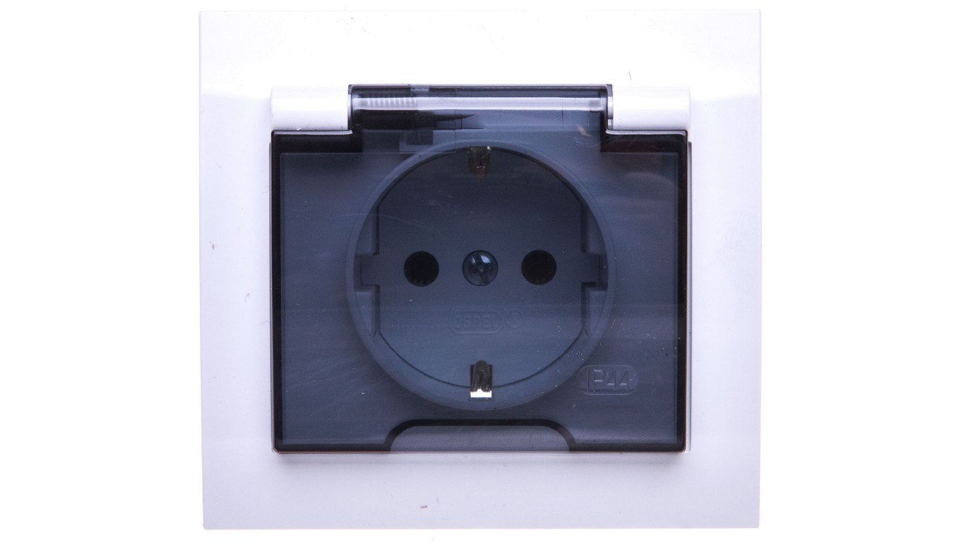 KIER Gniazdo bryzgoszczelne z/u Schuko IP44 klapka przezroczysta białe GPH-1WS/00/d