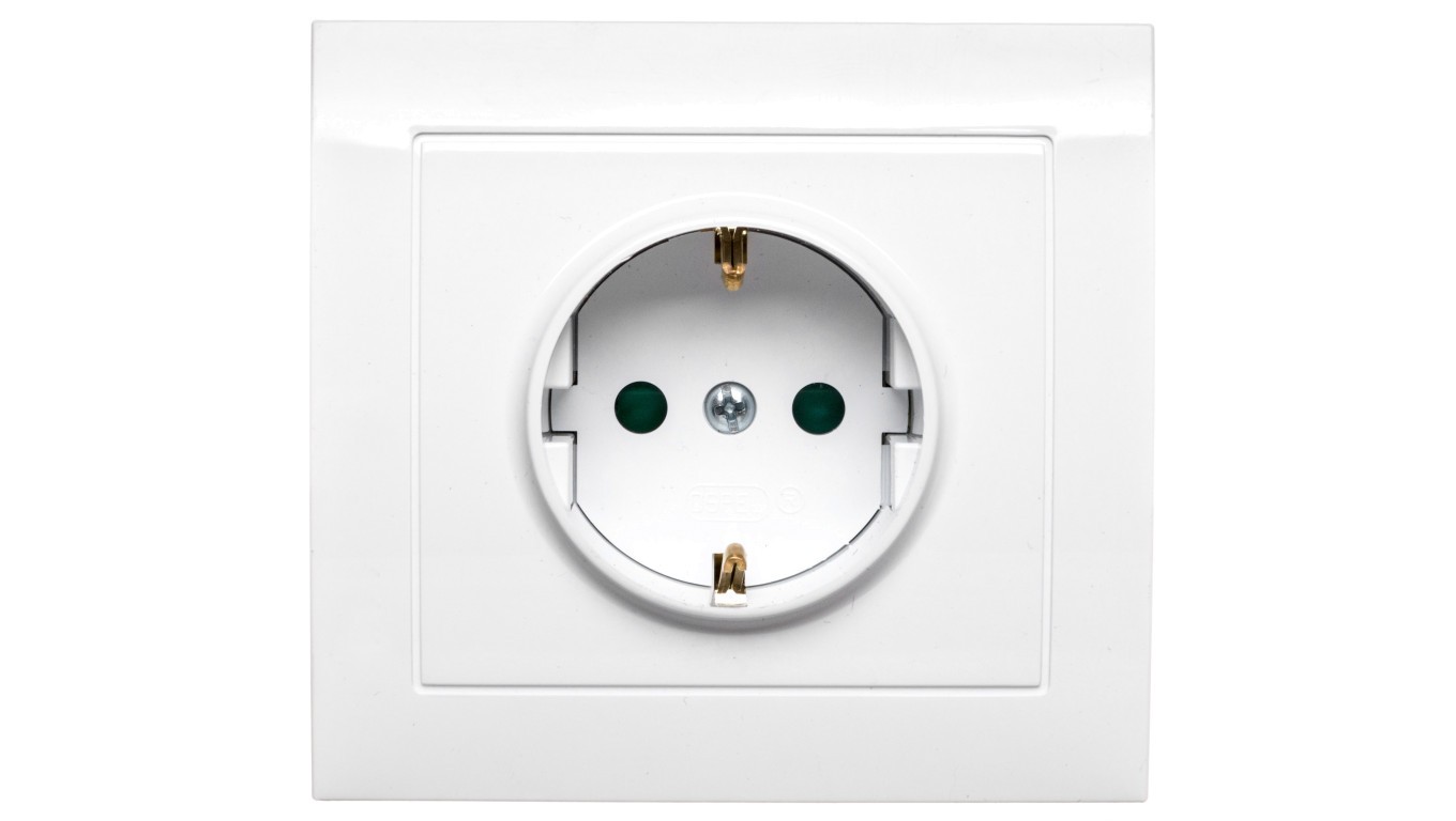 KIER Gniazdo pojedyncze z/u Schuko z przesłonami białe GP-1WSP/00