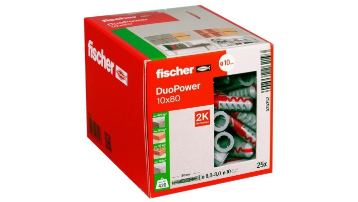 Kołki rozporowe uniwersalne DuoPower 10x80 25 sztuk FISCHER