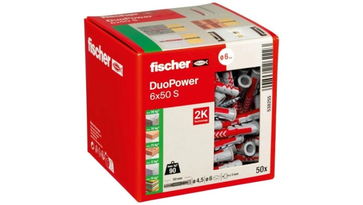 Kołki rozporowe uniwersalne DuoPower 6x50mm S 2-składnikowe z wkrętem PZ2 4,5x60mm z łbem stożkowem do wszystkich typów podłoża