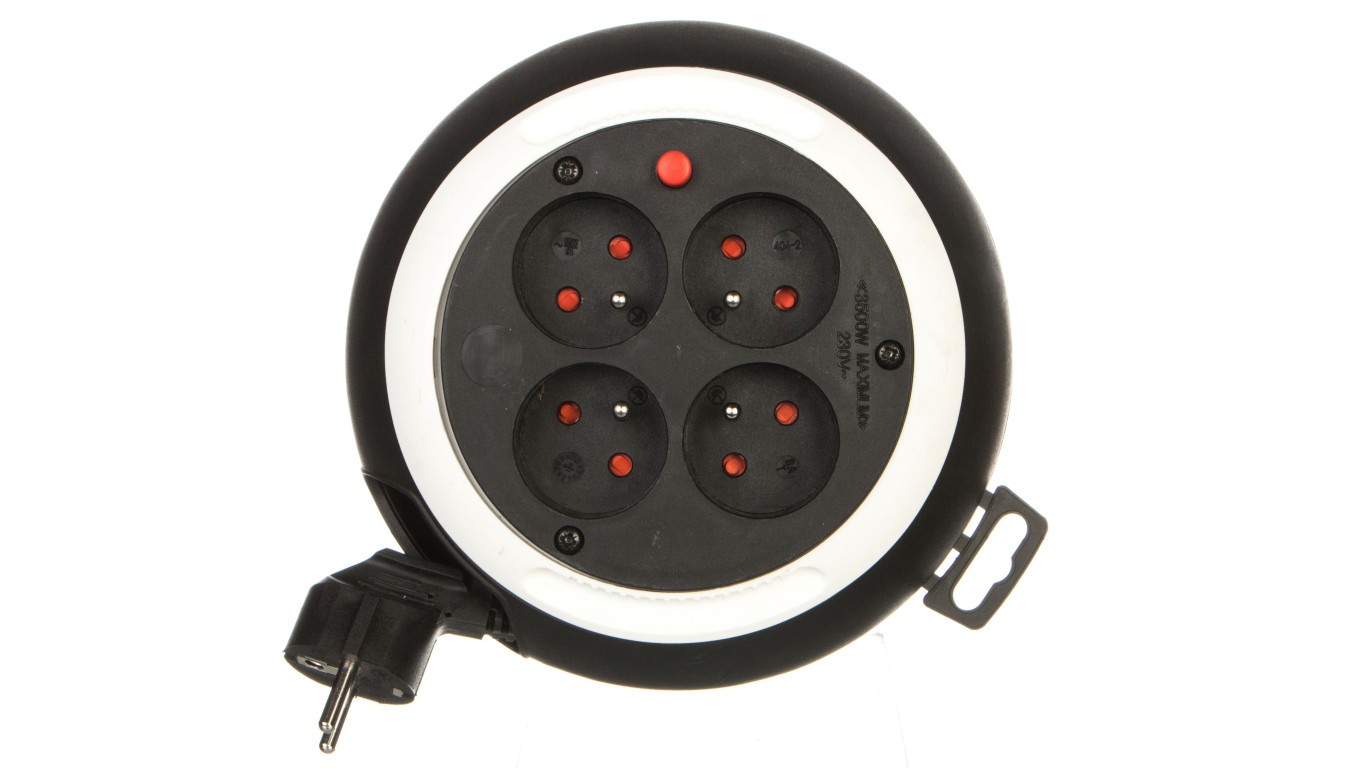 Kompaktowy przedłużacz 3m zwijany Comfort-Line CLS 4x230V czarny/biały H05VV-F 3G1,5 1109224