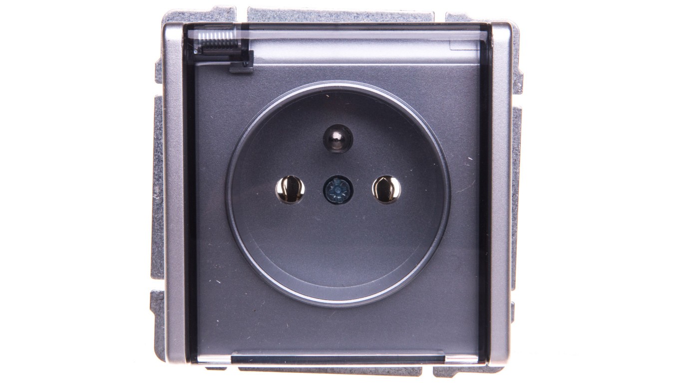 KOS66 Gniazdo bryzgoszczelne z/u IP44 z przesłonami klapka dymna aluminium 664040