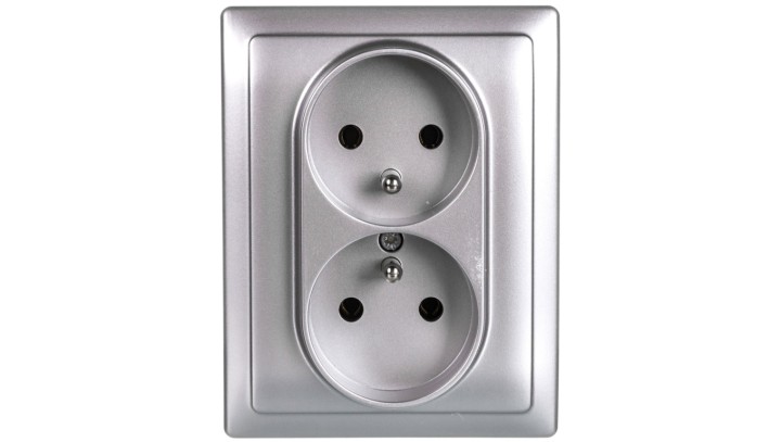 KOS66 Gniazdo podwójne z/u kompletne aluminium 664036