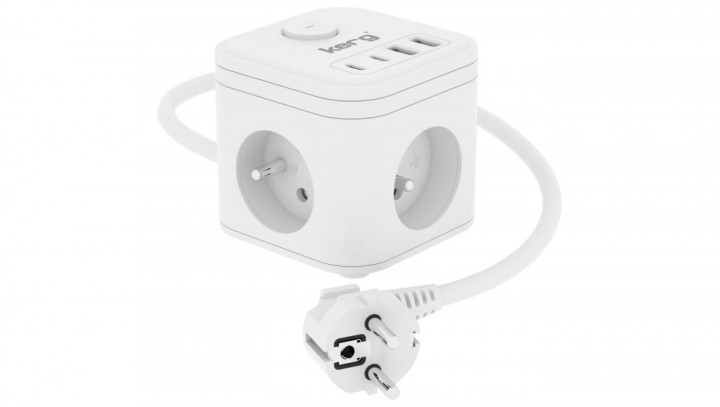Kostka zasilająca 3-gniazdowa + ładowarka USB-A+USB-C 1,5m 3×1,5mm2 H05VV-F 16A/250V~ KERG Smart biała