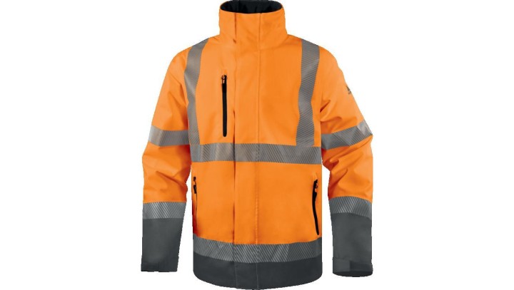 Kurtka ostrzegawcza, wodoodporna i oddychająca z poliestru RIPSTOP Stretch, Pomarańczowy Fluo-Szary, rozmiar: 5XL, TRACKOR5X