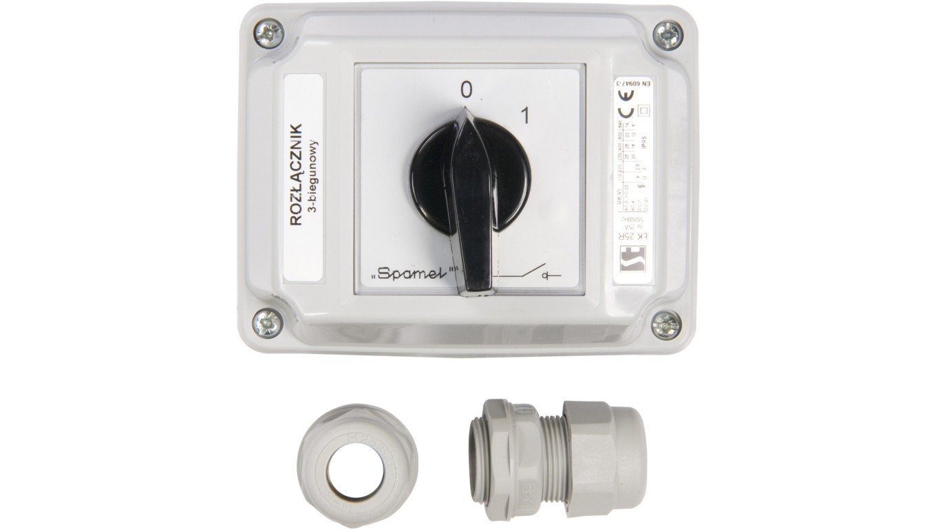 Łącznik krzywkowy 0-1 3P 25A w obudowie ŁK25R-2.8211OB2