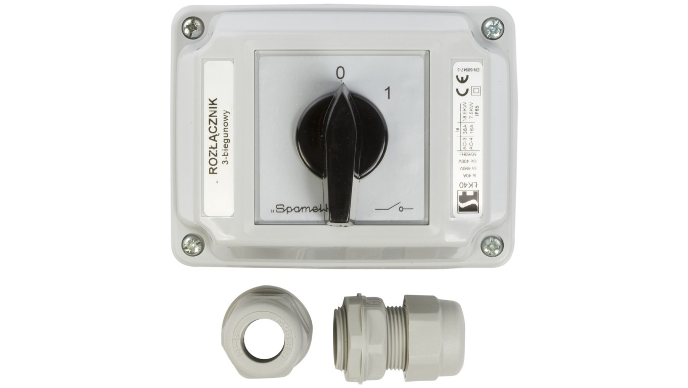 Łącznik krzywkowy 0-1 3P 40A w obudowie ŁK40-2.8211OB2