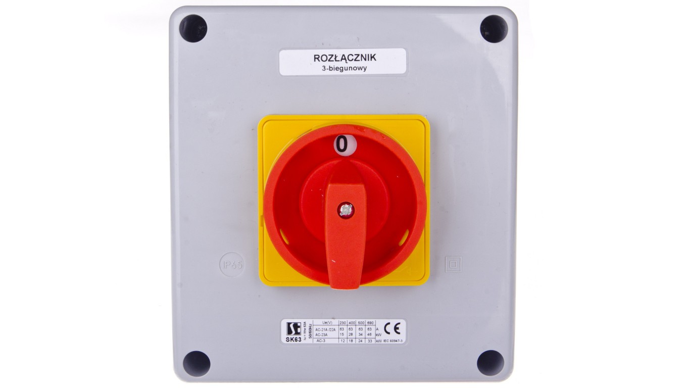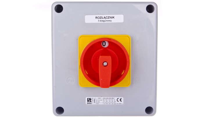Łącznik krzywkowy 0-1 63A 3P w obudowie żółto-czerwony SK63-2.8211OB16ZC